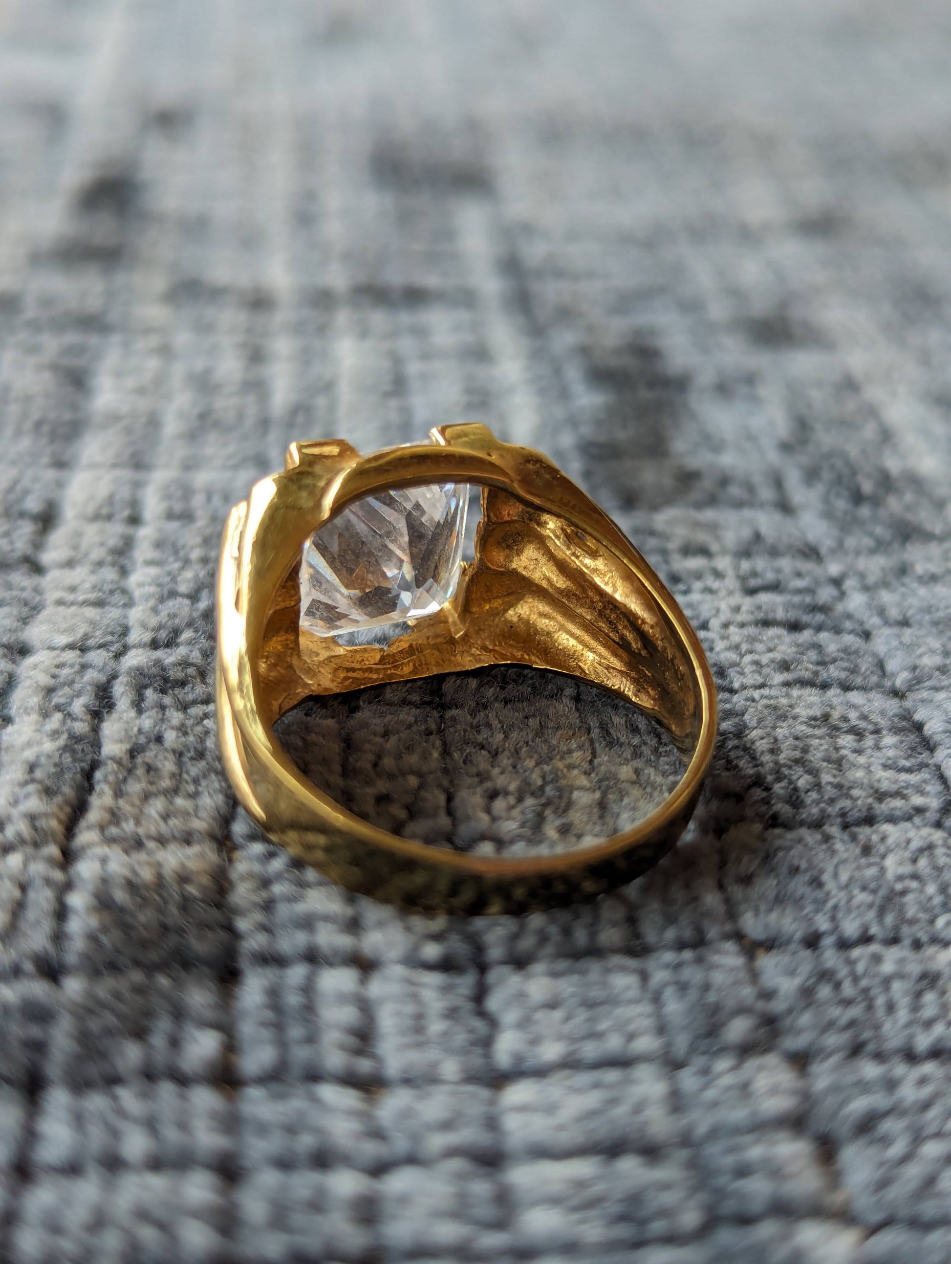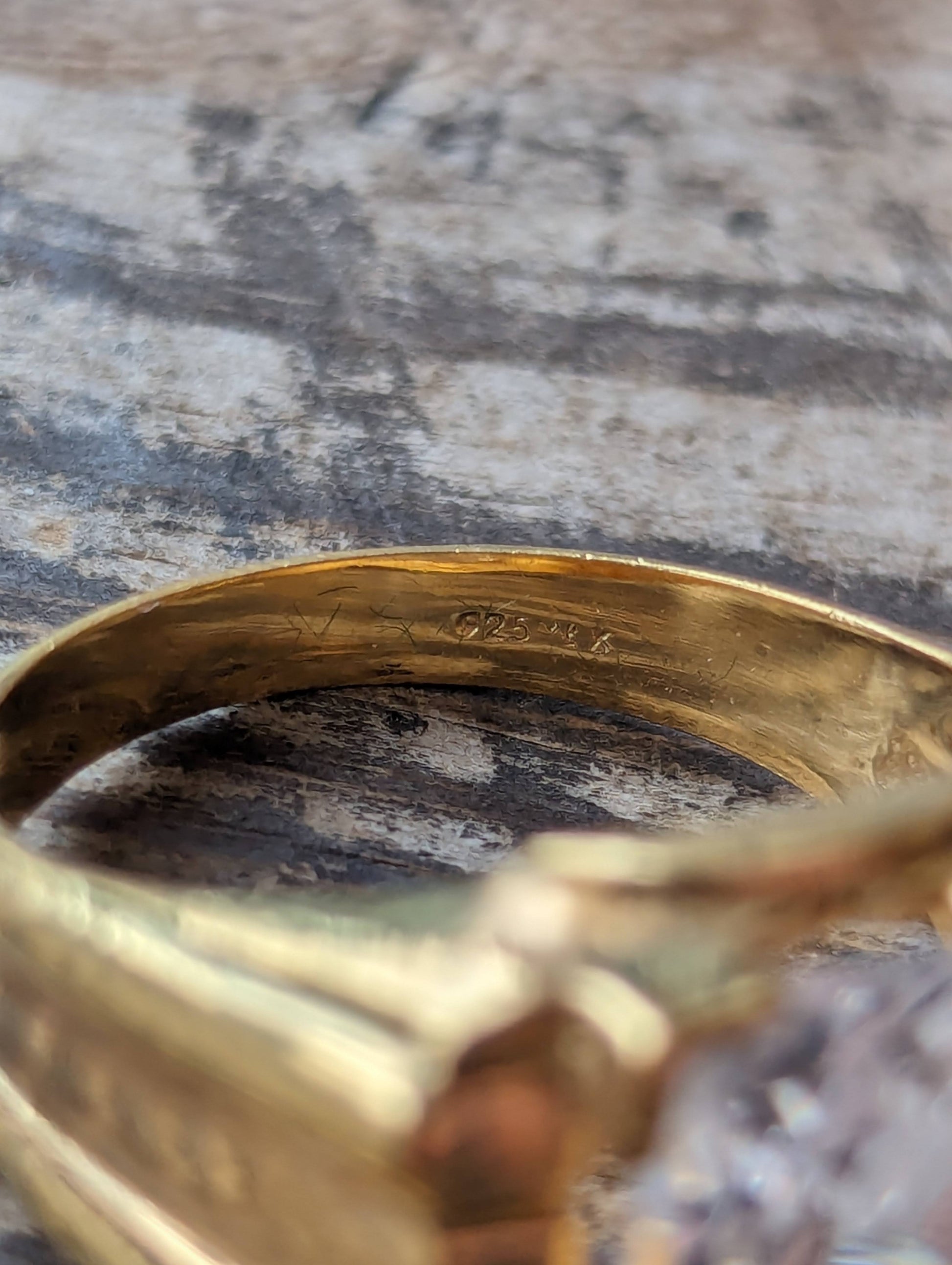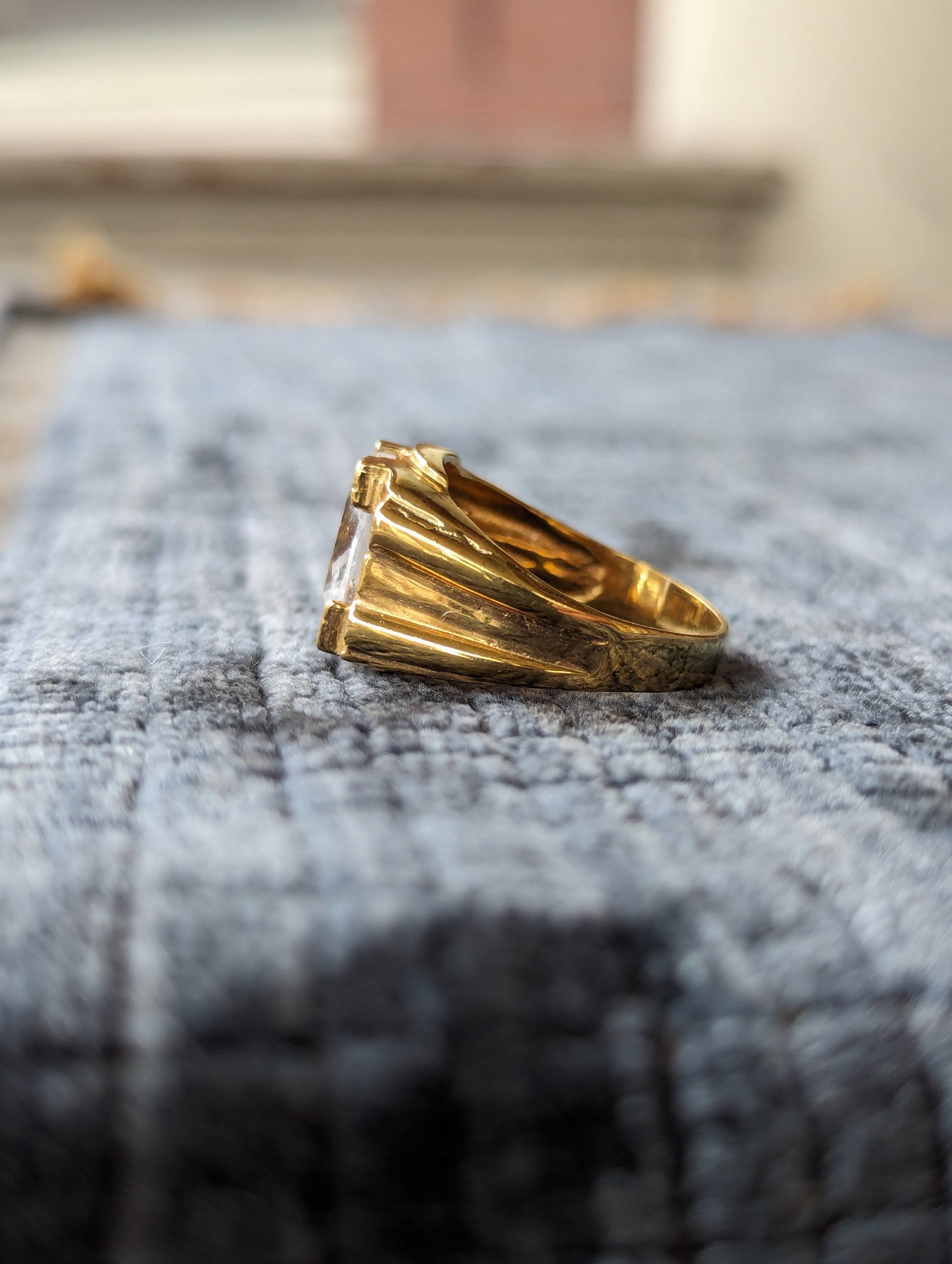 Deco style 18k on Sterling emerald cut CZ signet ring