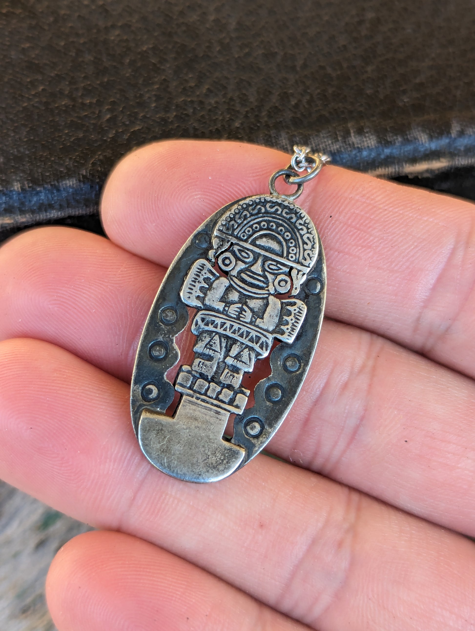 1940s Peruvian Double Sided Sterling Incan Tumi Pendant
