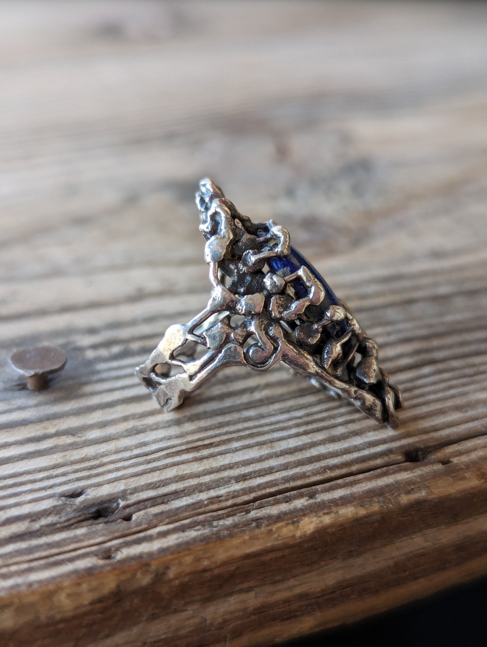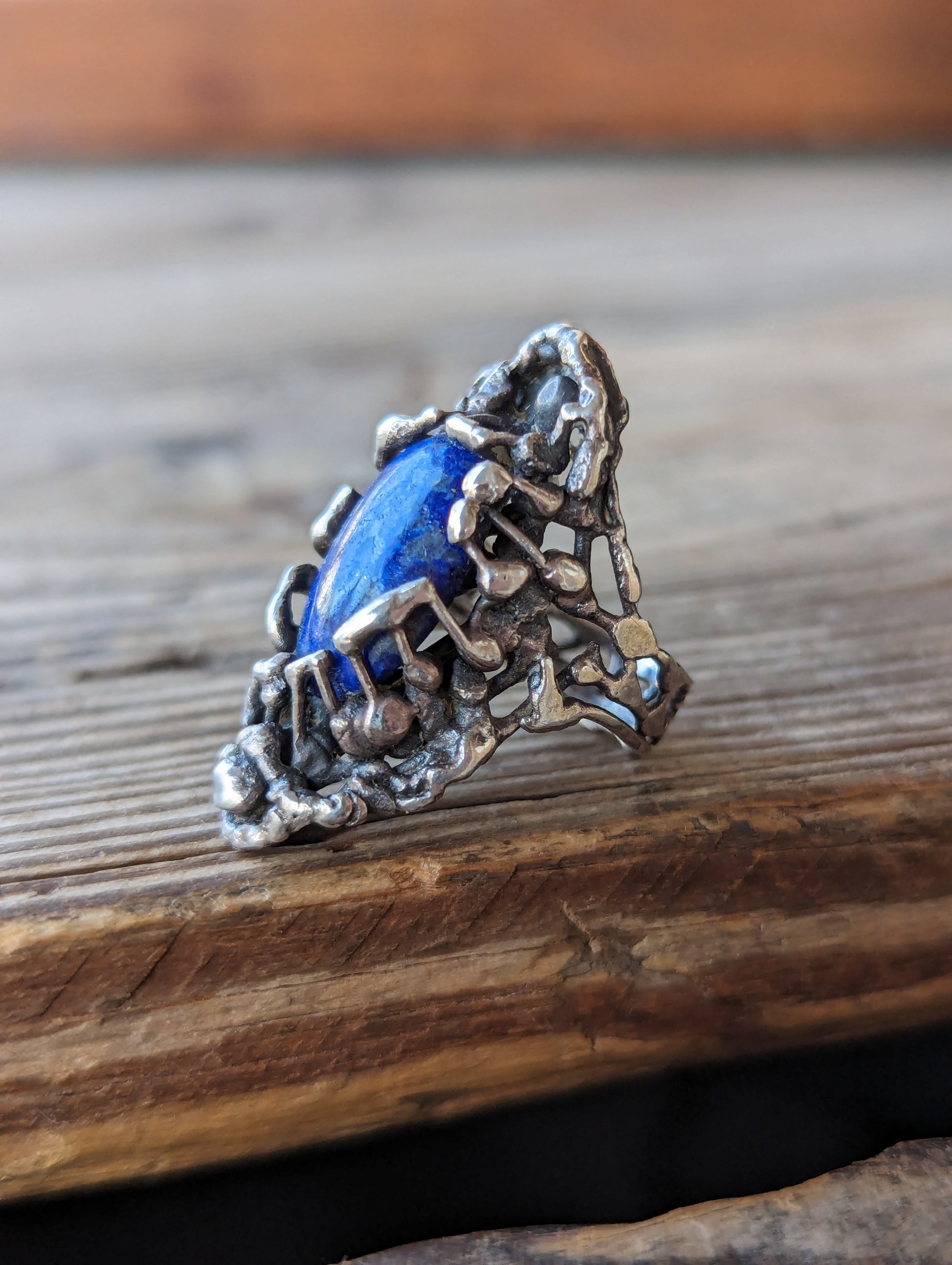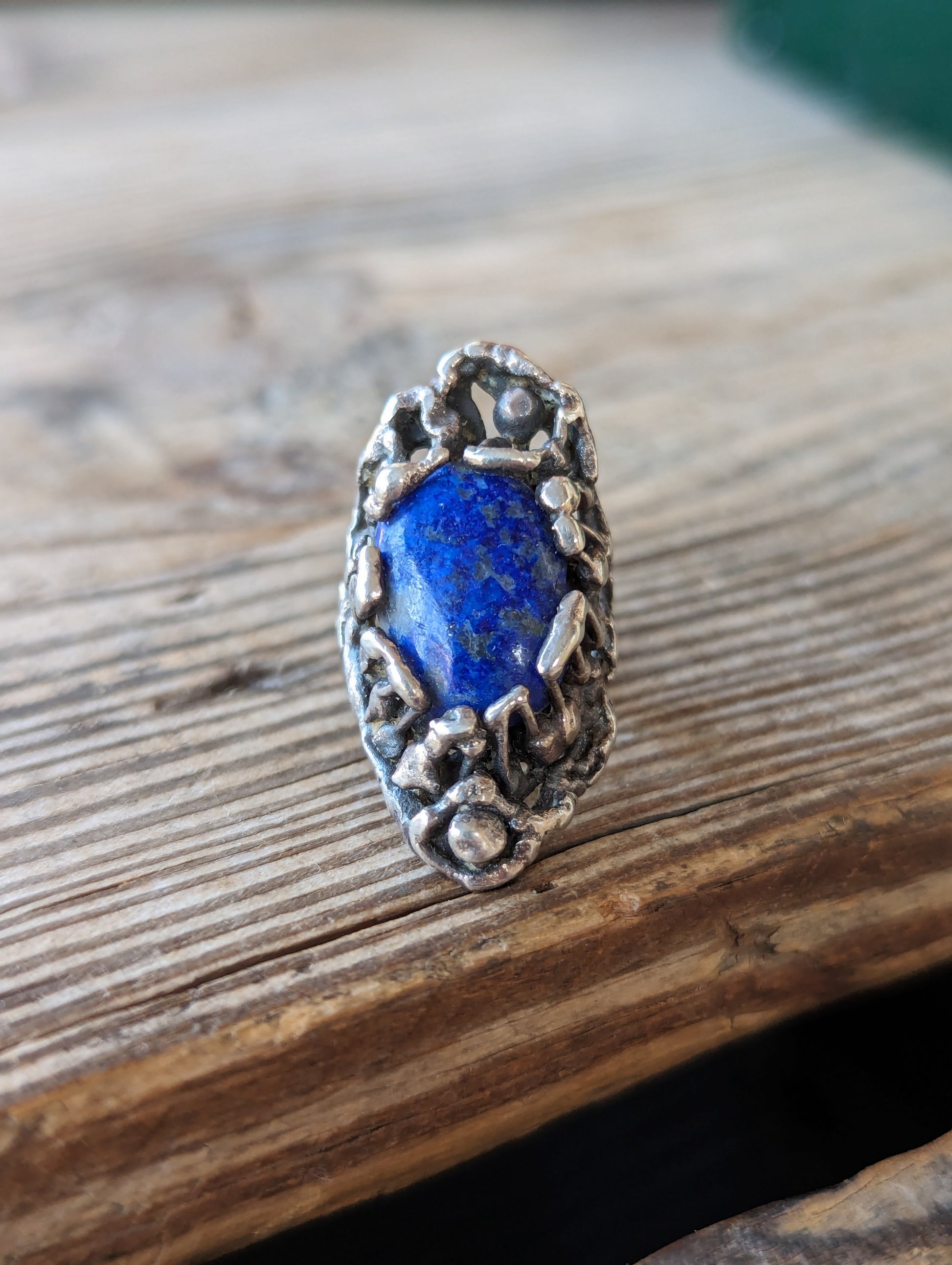 70s Sterling & Lapis Brutalist Ring