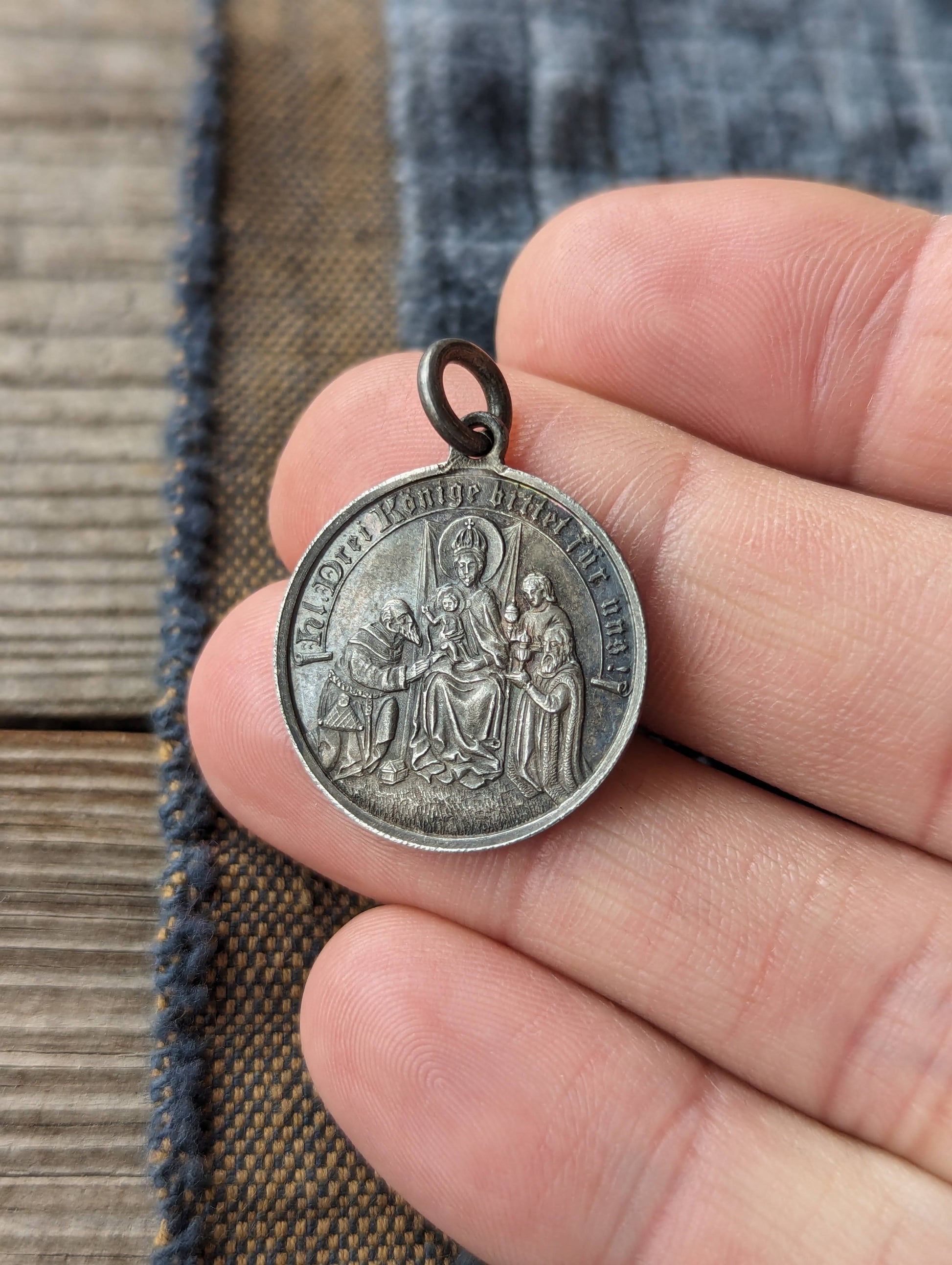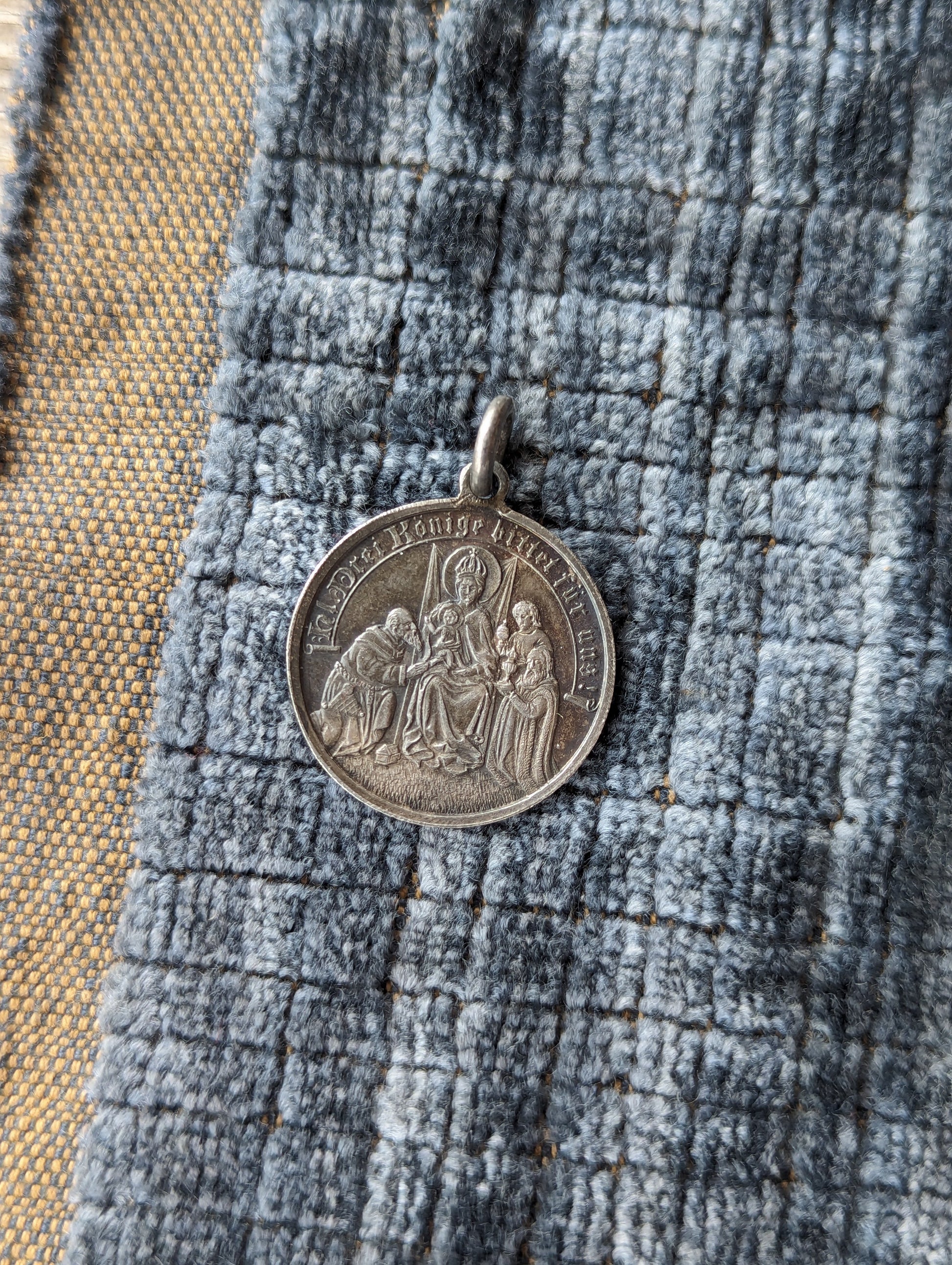 Antique 800 silver Drei Könige medal. German holiday celebrates the Wise Men arriving in Bethlehem.