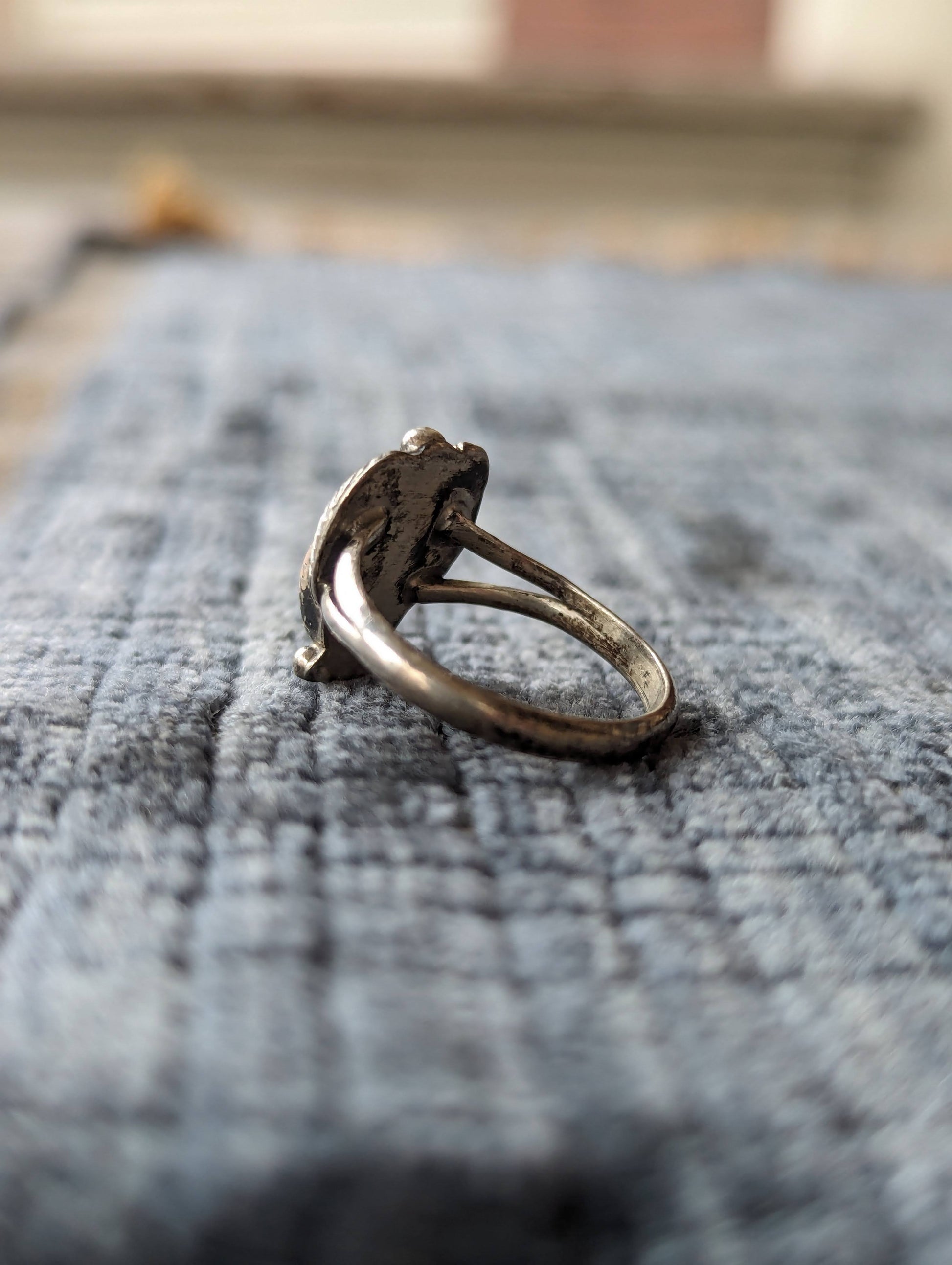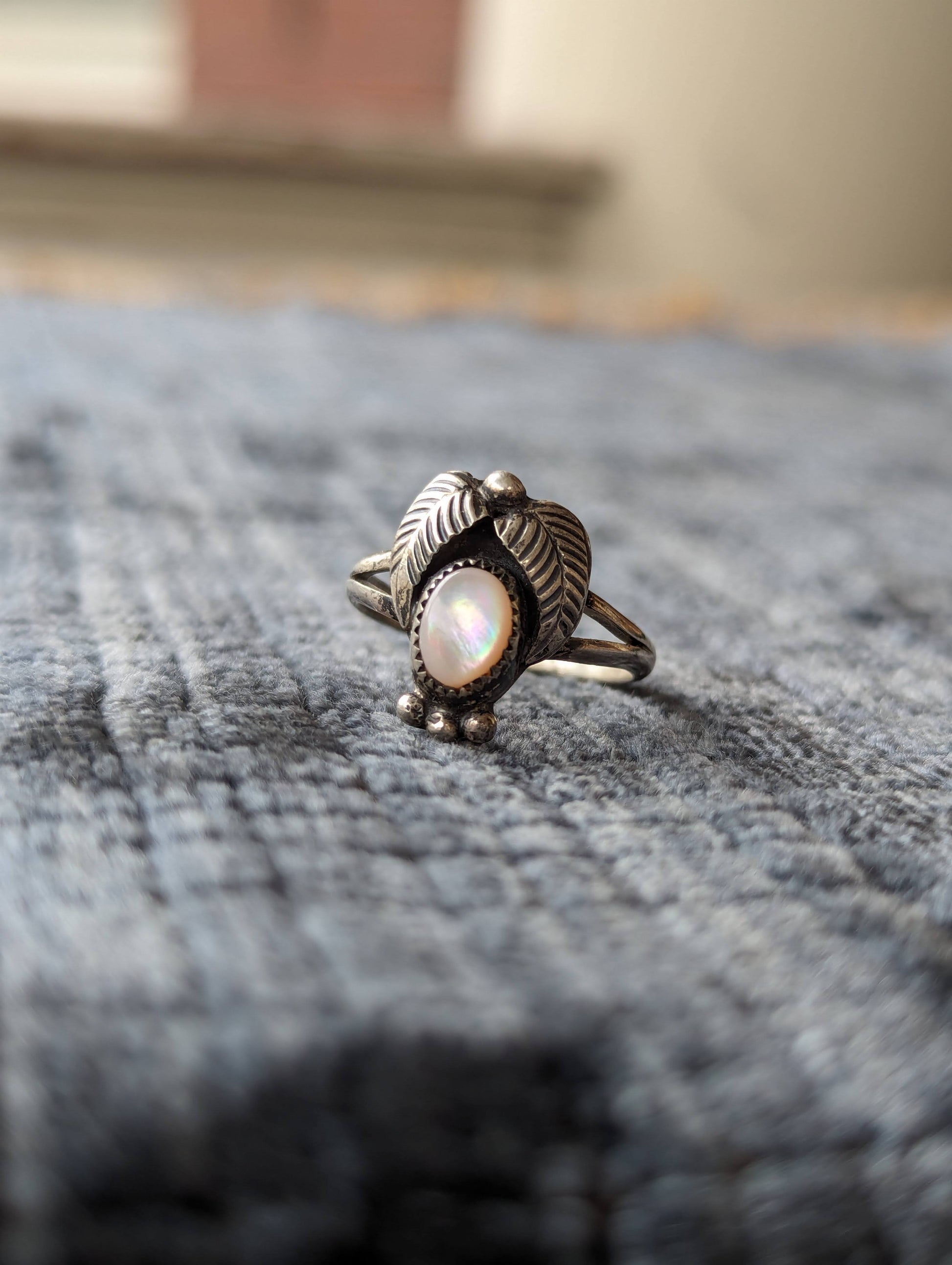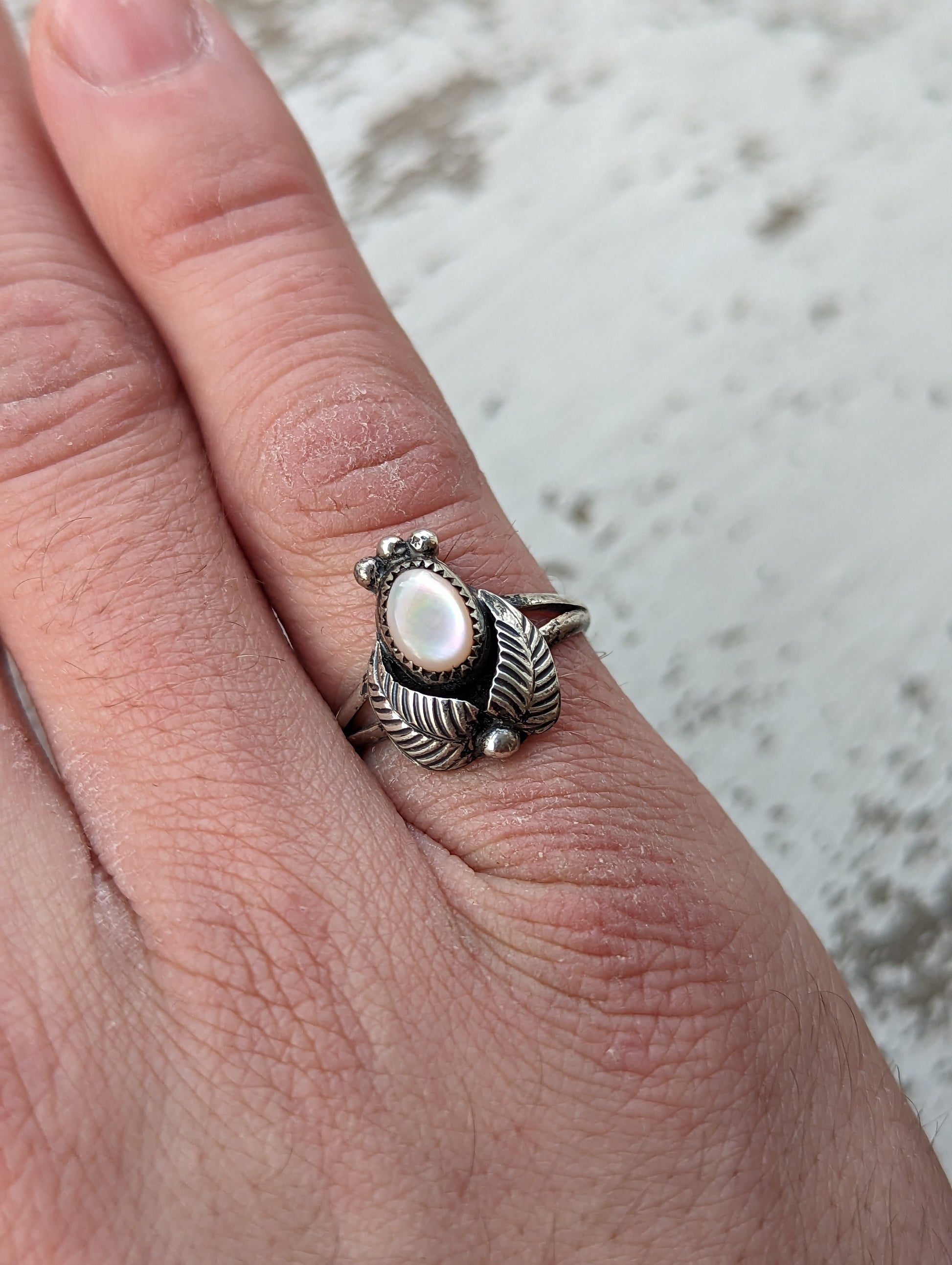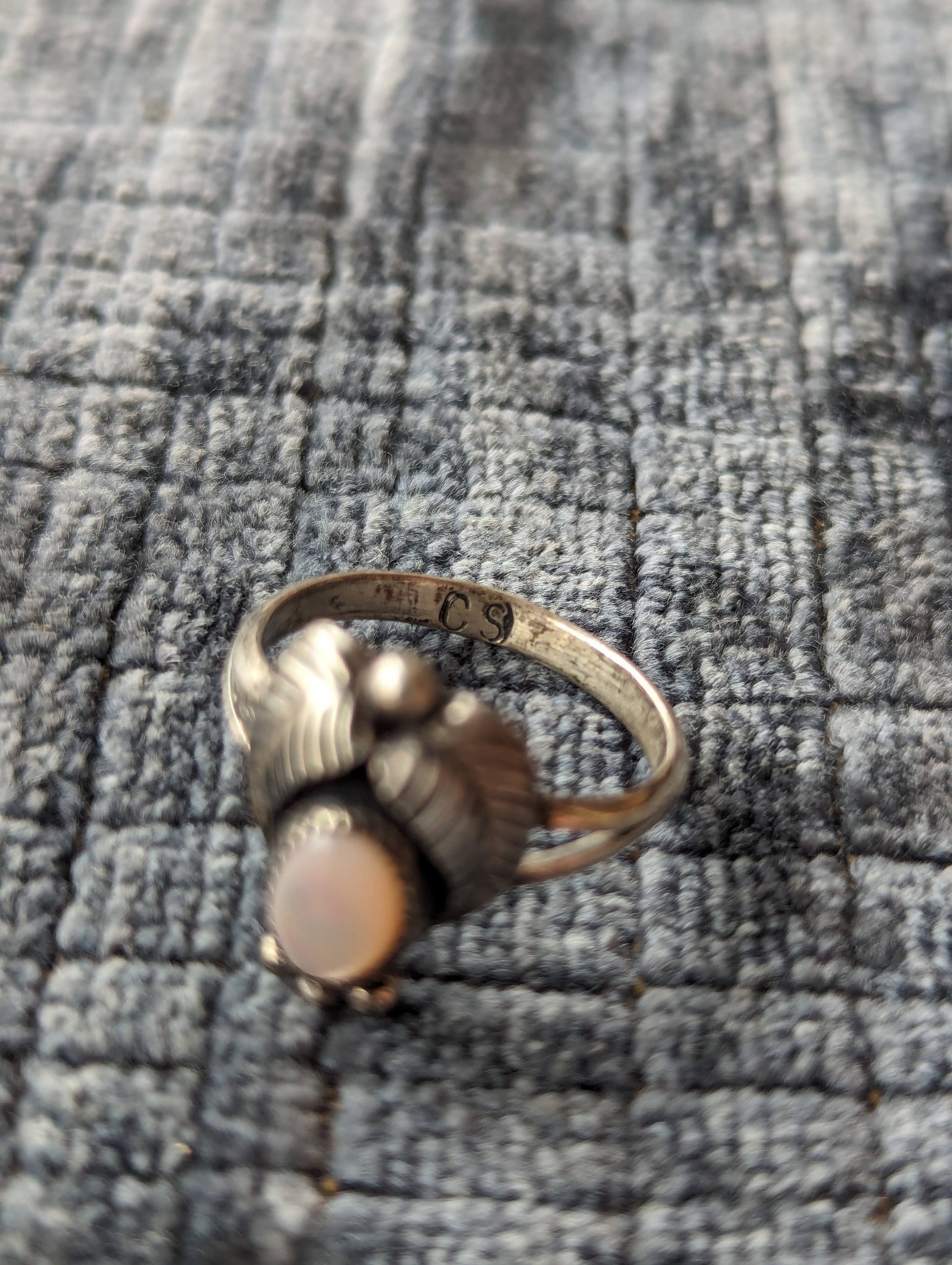Navajo sterling & pink Mother of Pearl ring signed CS